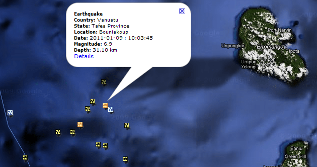Klusā okeāna Vanuatu valsts salu reģionā notikušas divas spēcīgas zemestrīces 6,9 un 6,4 baļļu stiprumā pēc Rihtera skalas. Nav ziņu par cietušajiem un nav arī izsludināta cunami trauksme.