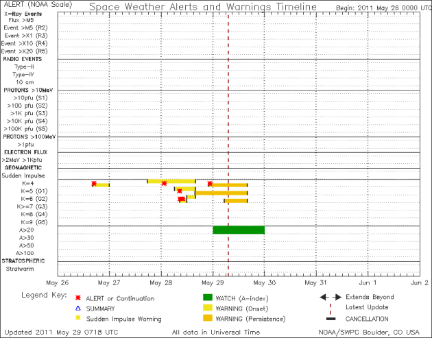 Tā kā Saules aktivitāte uz doto brīdi ir paaugstinājusies un Saules pēdējo 24 stundu laikā ir reģistrēti 16 C klases uzliesmojumi, tad tuvāko dienu laikā iespējamas jaunas manētiskās vētras.