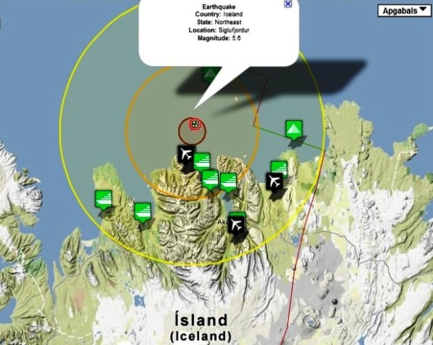 Islandes ziemeļos šorīt (21.10.12) reģistrēta zemestrīču sērija, no kurām spēcīgākā sasniegusi 5,7 magnitūdas (USGS, pēc Rihtera skalas) .