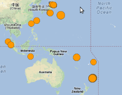 Trīs spēcīgi pazemes grūdieni 5,9-6,0-6.1 balles pēc Rihtera reģistrēti 12:19 pēc pasaules laika. Vēl pēc dažām minūtēm – 6 ballu stipri pazemes grūdieni uz A no Japānas. Pēc plkst. 14 atkal drebēja Klusā okeāna dzelme pie Indonēzijas (4,5-4,6 balles). Un vēl 3 grūdieni (5,6-5,6-5,8 balles) tajā pašā reģionā pie Jaunzēlandes. Seismiskas aktivitātes vērotas arī Ķīnā, Taivānā, Peru, Čīlē.