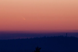 Komēta ir visai maza, un ar 400mm objektīvu ir visai par īsu. Traucē arī tas, ka komēta ir ļoti zemu pie horizonta, skaidru attēlu grūti dabūt….