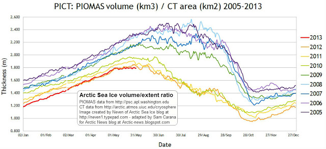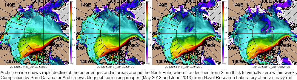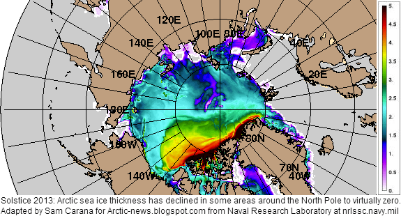 Tas nozīmē ka Arktiskajā jūrā ledus kļuvis ļoti plāns un tā to ātri zaudē. Atliek tik stiprāk papūst vējiņam un Ziemeļpols paliks bez ledus.