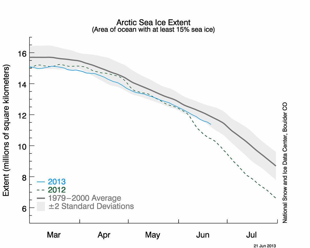 Pirmajā mirklī, skatoties attēlus un līknes, viss liekas ļoti labi. Pat pārāk labi. Jo, salīdzinoši ar 2012 gadu, šogad Arktiskās jūras ledus platības kūst lēni.