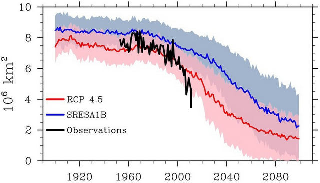 Zinātnieki aprēķinājuši, ka līdz 2050. gadam ledus Arktikā izkusīs pilnībā, taču arī norāda, ka kušanas ātrums ir lielāks nekā tiek prognozēts. Tas licis atsevišķiem zinātniekiem izteikt prognozes, ka Arktikas ledājs izkusīs tuvāko 3-4 gadu laikā.