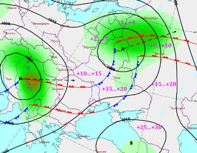 20130404_ciklonsŠķiet paradoksāli, bet tomēr fakts – ciklons no Vidusjūras, kas šobrīd virzās pie mums un jau ir sasniedzis Kurzemi, atnesīs sniegu. Tas izskaidrojams ar to, ka ilgāku laiku Baltijas reģionā “saimniekoja” Grenlandes anticiklons, sagādājot mums saulainu, taču aukstu laiku. Un tagad, dienvidu siltajām gaisa masām saduroties ar aizejošo anticiklonu, nokrišņus piedzīvosim sniega veidā.