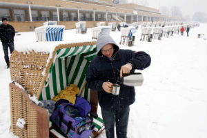 20130330_aukstums_vacijaLatvijā nav nekas jauns sagaidīt Lieldienas ar sniegu, īpaši tādos gados kā šis, kad kristīgās Lieldienas svinam ļoti agri. Taču Vācijai sniegs un sals marta beigās ir visai reta parādība, – pavasara atnākšana kavējas jau veselu mēnesi. Un laikā, kad citkārt jau plaukst lapas un valda patīkams siltums, šopavasar termometra stabiņš naktīs noslīd līdz -10 grādiem, un visu valsti klāj sniega sega. Vācieši, šo parādību puspajokam dēvē par “krievu ziemu”, pamatojoties uz apstākli, ka neierastais aukstums ieplūdis no Sibīrijas.