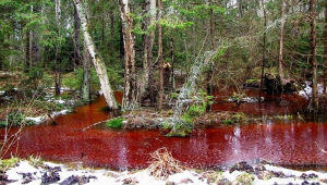 kursu_kapaKaļiņingradas apgabala nacionālajā parkā “Kuršu Kāpa” («Куршская коса»), Grencas mežniecības teritorijā ūdens vietējās udenstilpnēs un meliorācijas grāvjos kļuvis sarkani brūns. Uz baltā sniega fona, tas izskatās ne tikai kontrastaini, bet arī nepatīkami, un izsauc iedzīvotājos bažas par sarkanā ūdens izcelsmi.