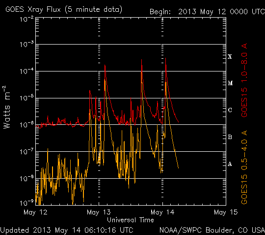 Saules rietumu puses plankums AR1745 uz atvadām, vakar 16:31 (pēc Latvijas laika), dāvājis ilgstošu M5 klases uzliesmojumu ar spēcīgu koronas masas izvirdumu (Coronal Mass Ejection jeb CME), kuram sekoja spēcīga Saules radiācijas vētra (S3 klases).