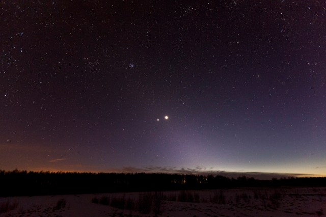 13.marta vakarā un naktī uz 14.martu ziemeļu puslodes iedzīvotājiem būs iespēja vērot ļoti interesantu parādību – Venēra un Jupiters vizuāli viens no otra atradīsies ļoti nelielā attālumā.