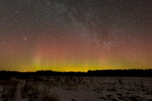 Kā jau bija gaidāms, arī šovakar tika sagaidīta ziemeļblāzma. Aktivitāti nodrošināja ~M3 (M8.4 red. pieb. 😉 ) kategorijas uzliesmojums uz Saules. Šoreiz ziemeļblāzma bija jūtami vājāka par iepriekšējo, bet tomēr prieks to redzēt mūsu platuma grādos. Atliek vien gaidīt nākošo ar cerību, ka būs pietiekoši jaudīgi Vēl bildēs var redzēt mūsu galaktikas tuvāko kaimiņu galaktiku – Andromēdu (pa kreisi augšā)