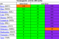 | Šodienas 3 stundu Kp indeks (Magnētisko vētru stiprums) | Zemes magnetometrs (Zemes magnētiskā lauka izmaiņas)) |